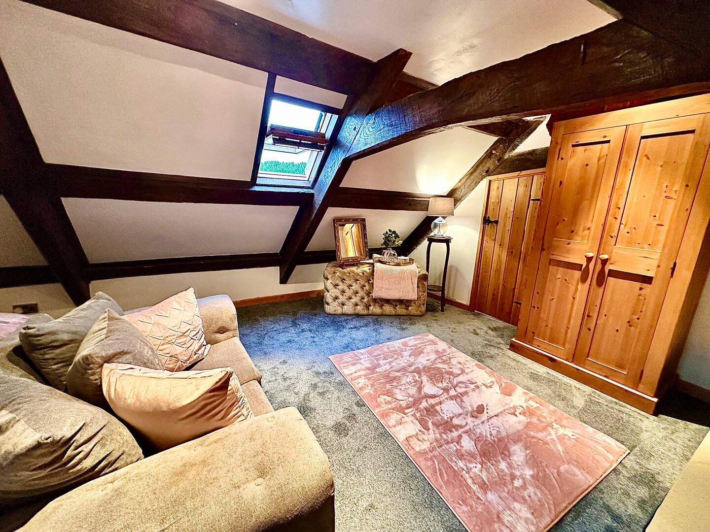 From the master super king family suite, a fantastic stone staircase makes its way to the super king size attic family suite with king trusses and fantastic oak beams overhead.