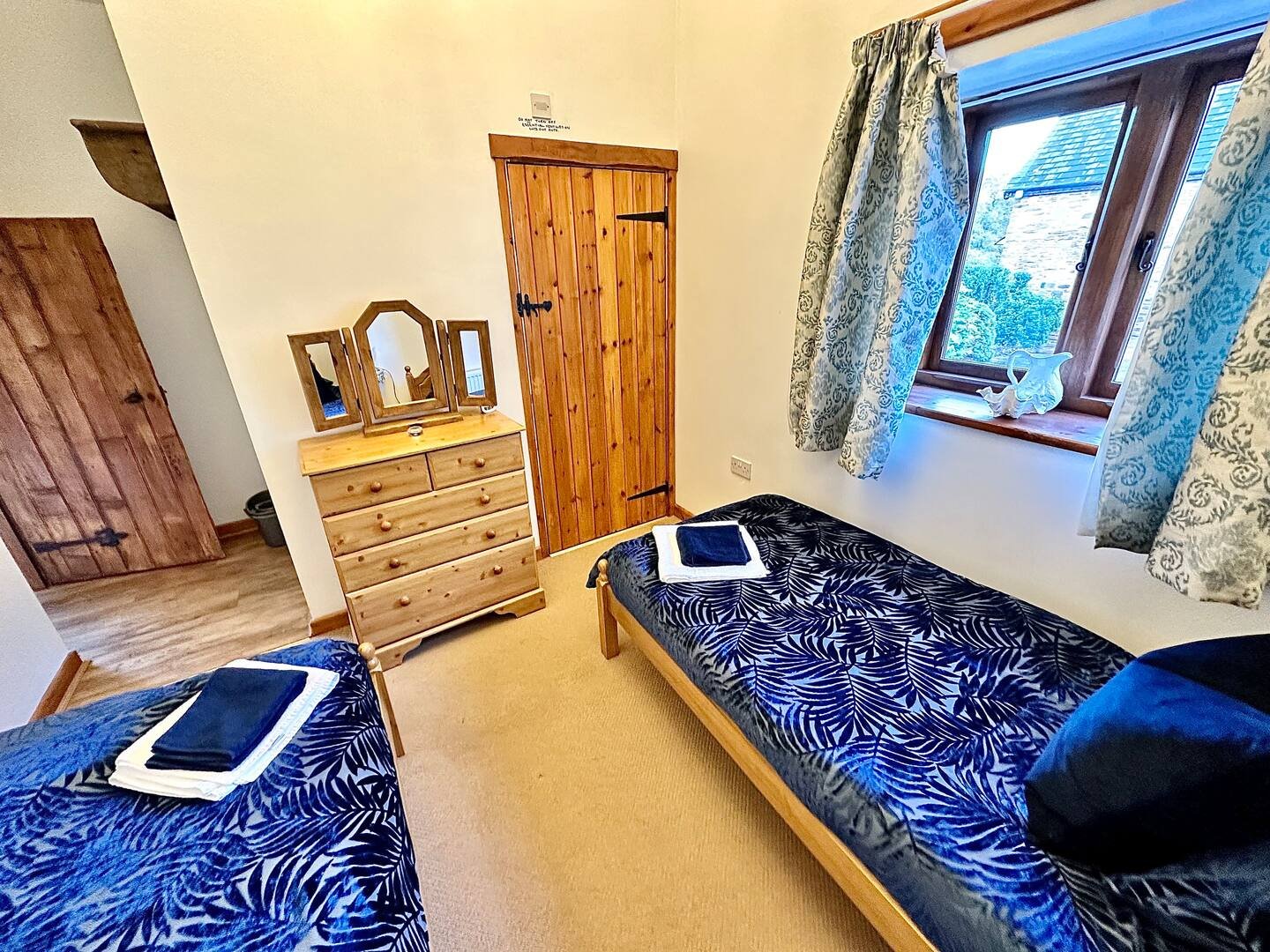 Rowan is a rural and semi secluded cosy detached stone built barn that once upon a time was a cow shed for The Pentre Farm on the grounds of which the barn sits and it now hosts one twin room and one double, both en suite, spacious sitting/dining room and with excellent views, from the lounge of the pond below and valley beyond.