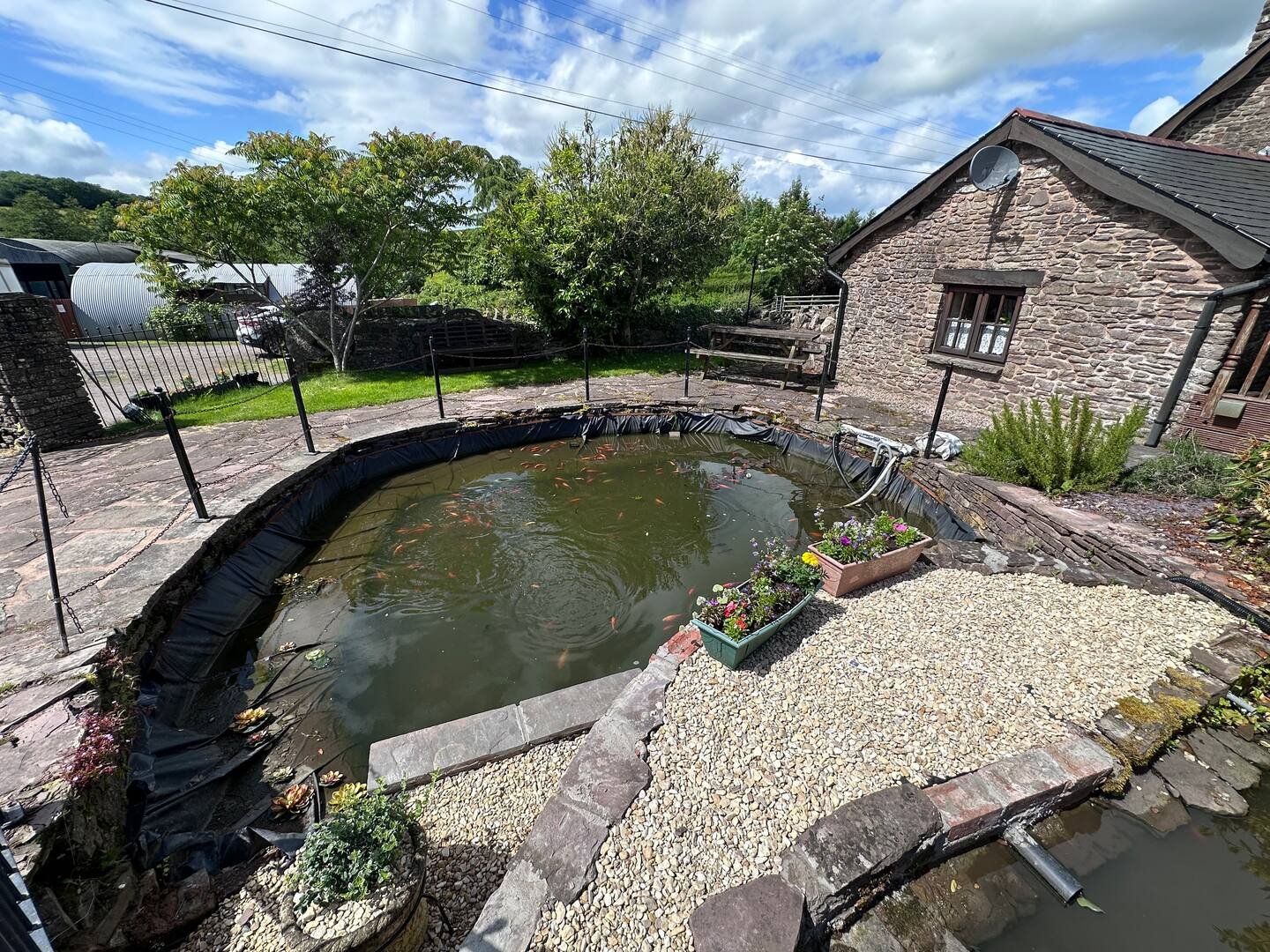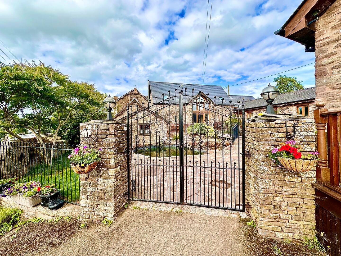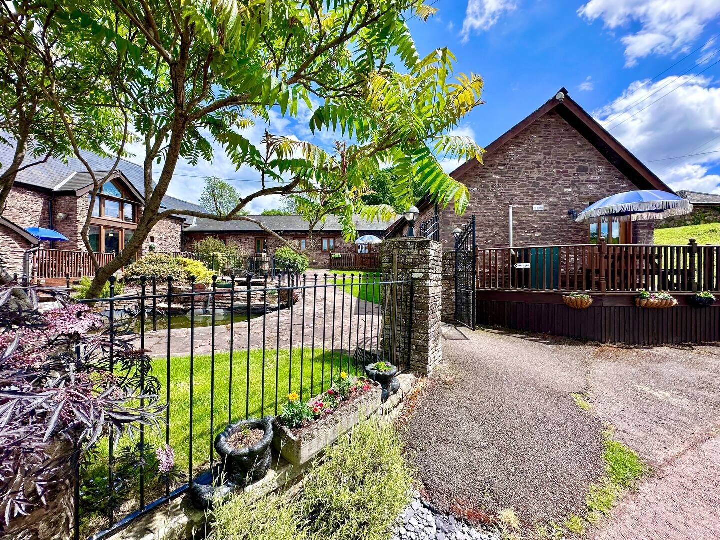 The barn is set within a lovely private courtyard with a central pond area and a cute little wrought iron and wooden private bridge over the pond to access the property.