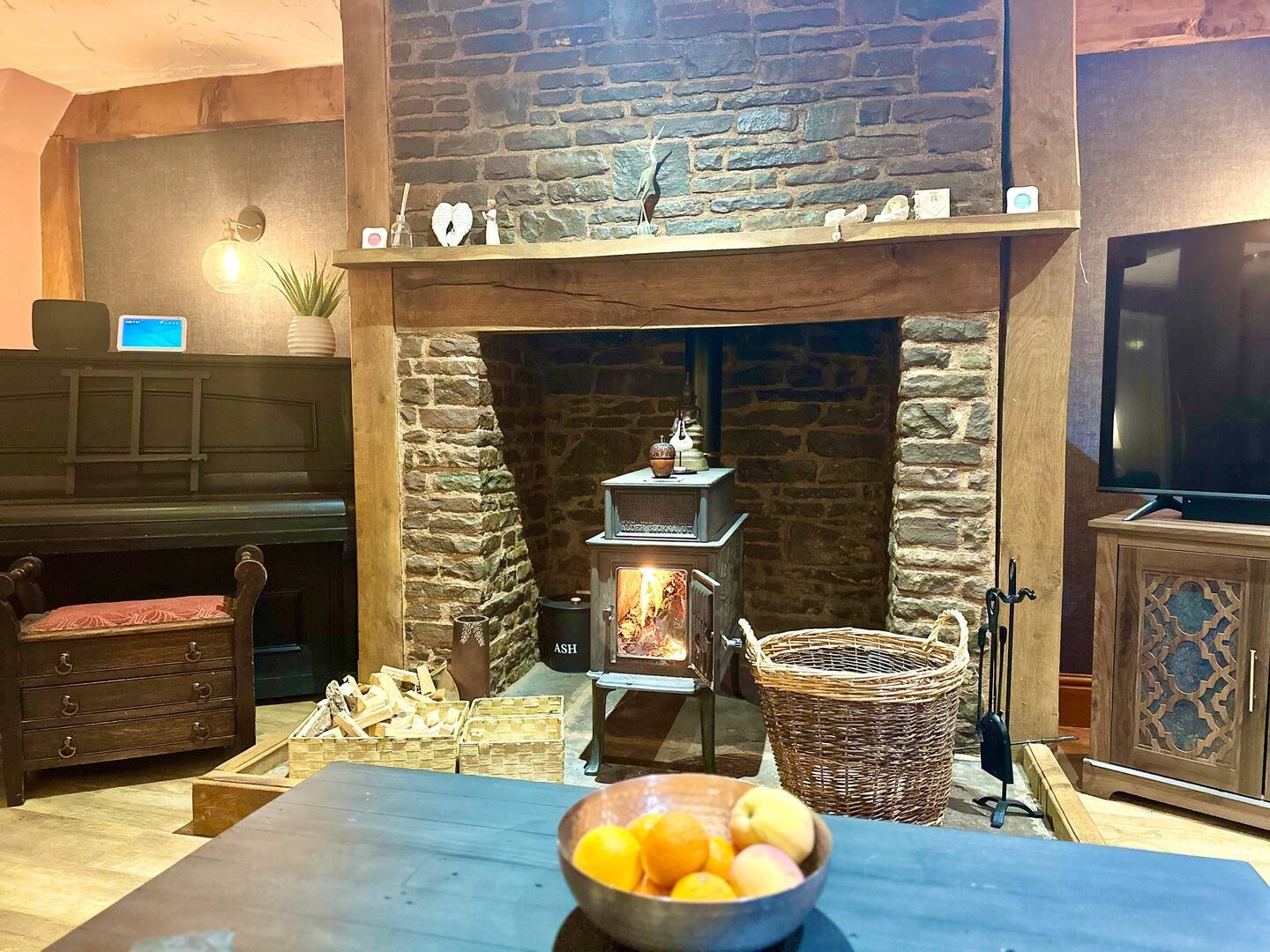 We leave one complimentary basket of logs and kindling with fire lighters for the log burner during the winter months.