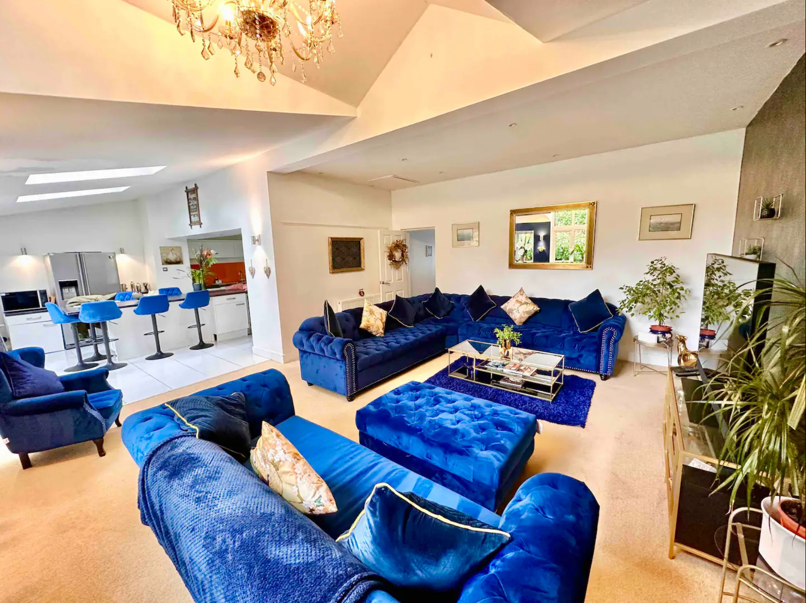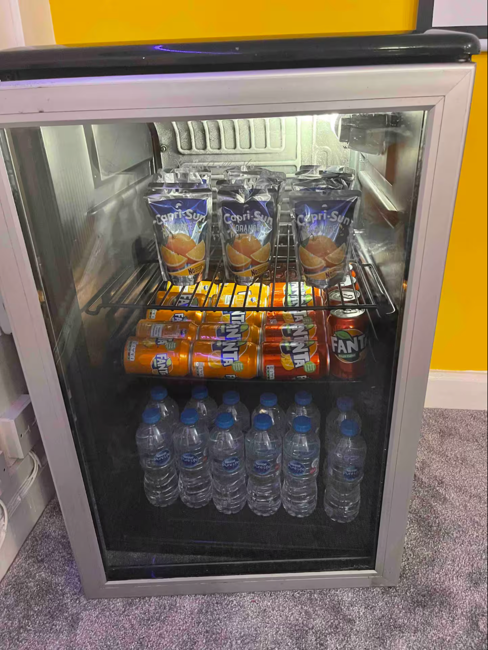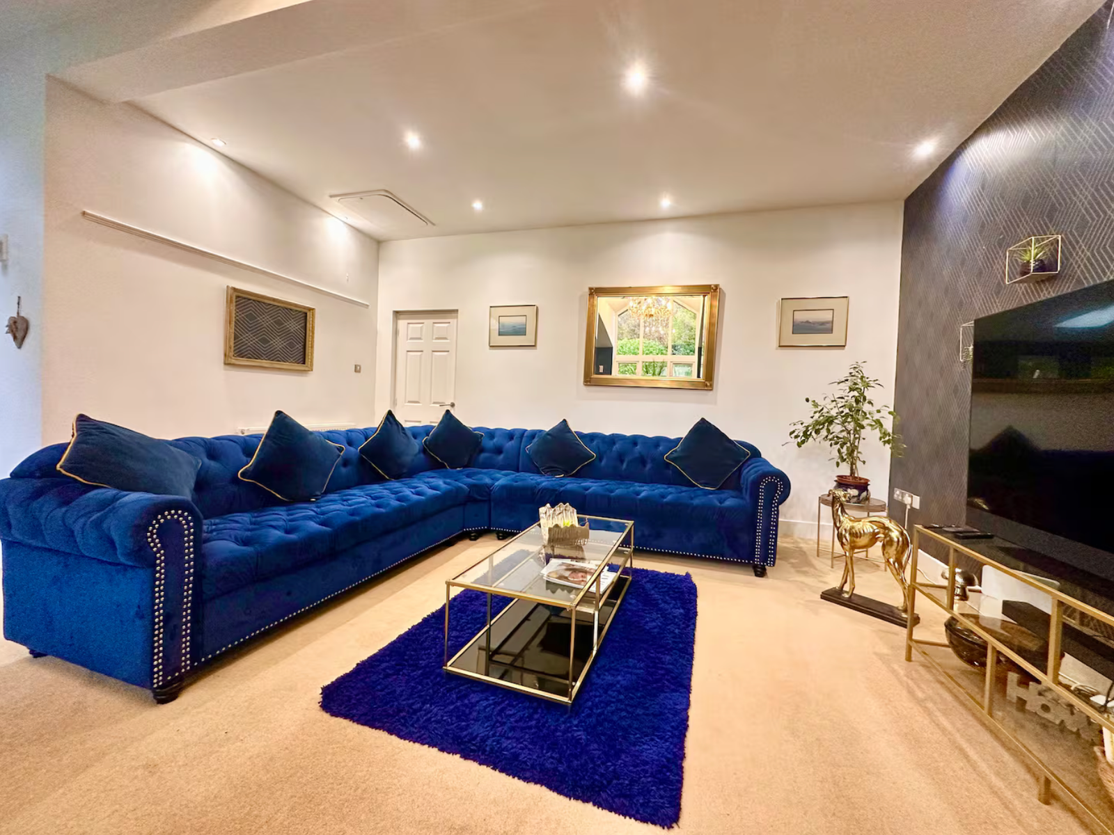 The large brand new cinema room/games room is suitable for up to 8 people to watch a movie on bean bags with side tables and a drinks fridge, popcorn boxes and paper straws are also provided.
