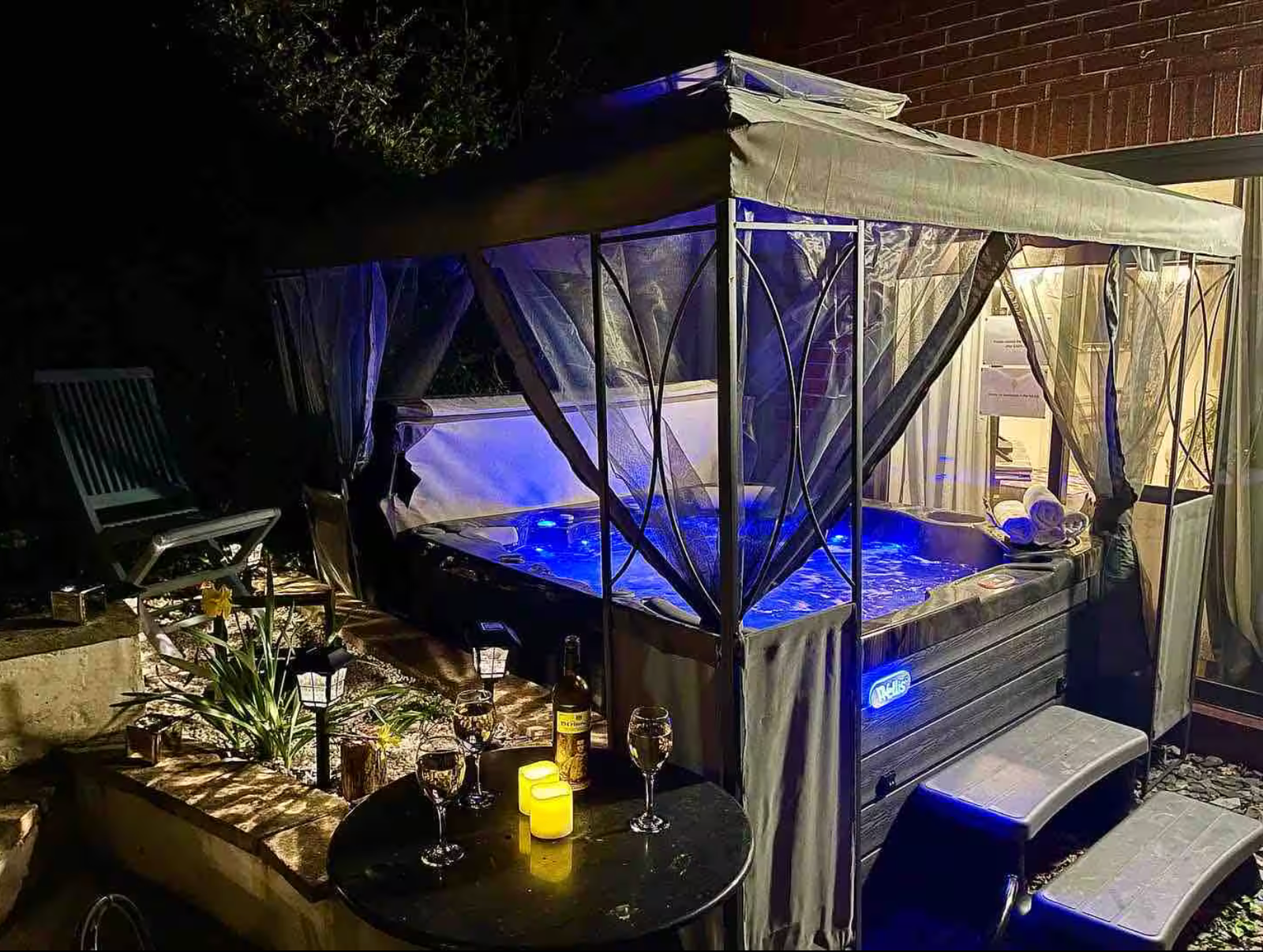 The house is completely detached with a good size garden and lower patio area with 6 person hot tub including, super massage jets and side fountains.
