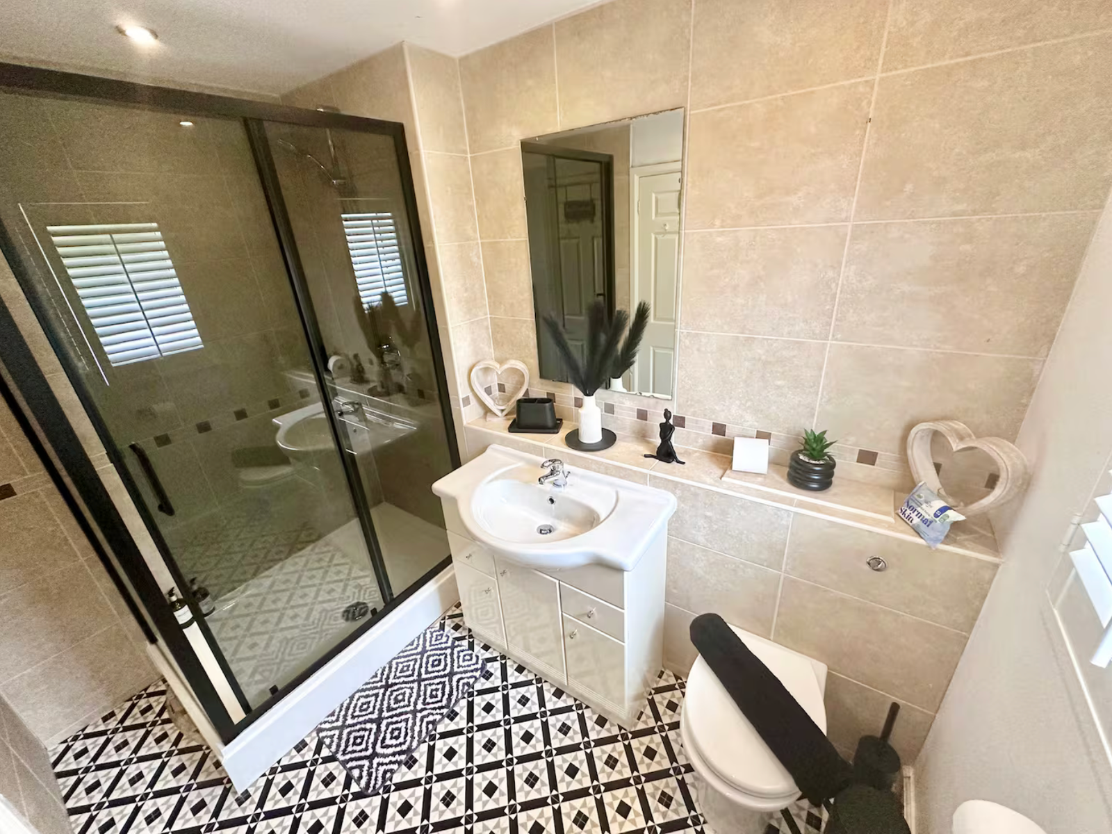 A twin bedroom with a 50 inch tv and one double bedroom plus another twin room and a large master bathroom complete this beautiful detached home.